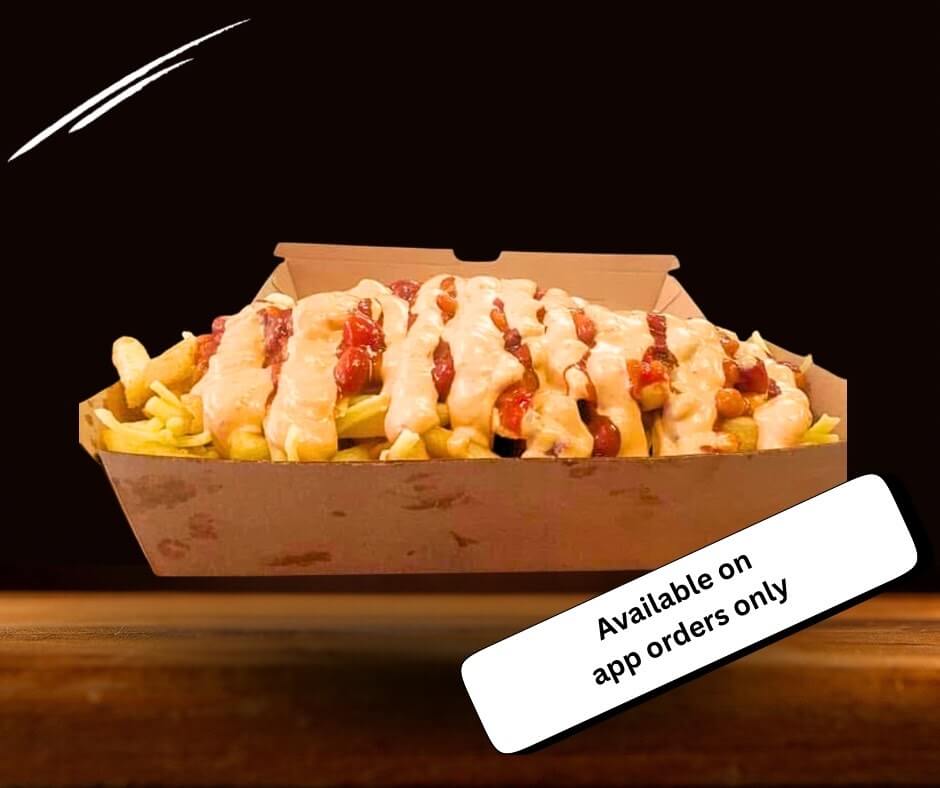 Sour cream, chips gravy, beef patty, cheese, chipotle sauce, beef patty cheese, bacon & chipotle sauce served with a side of Supa Crunch Chips